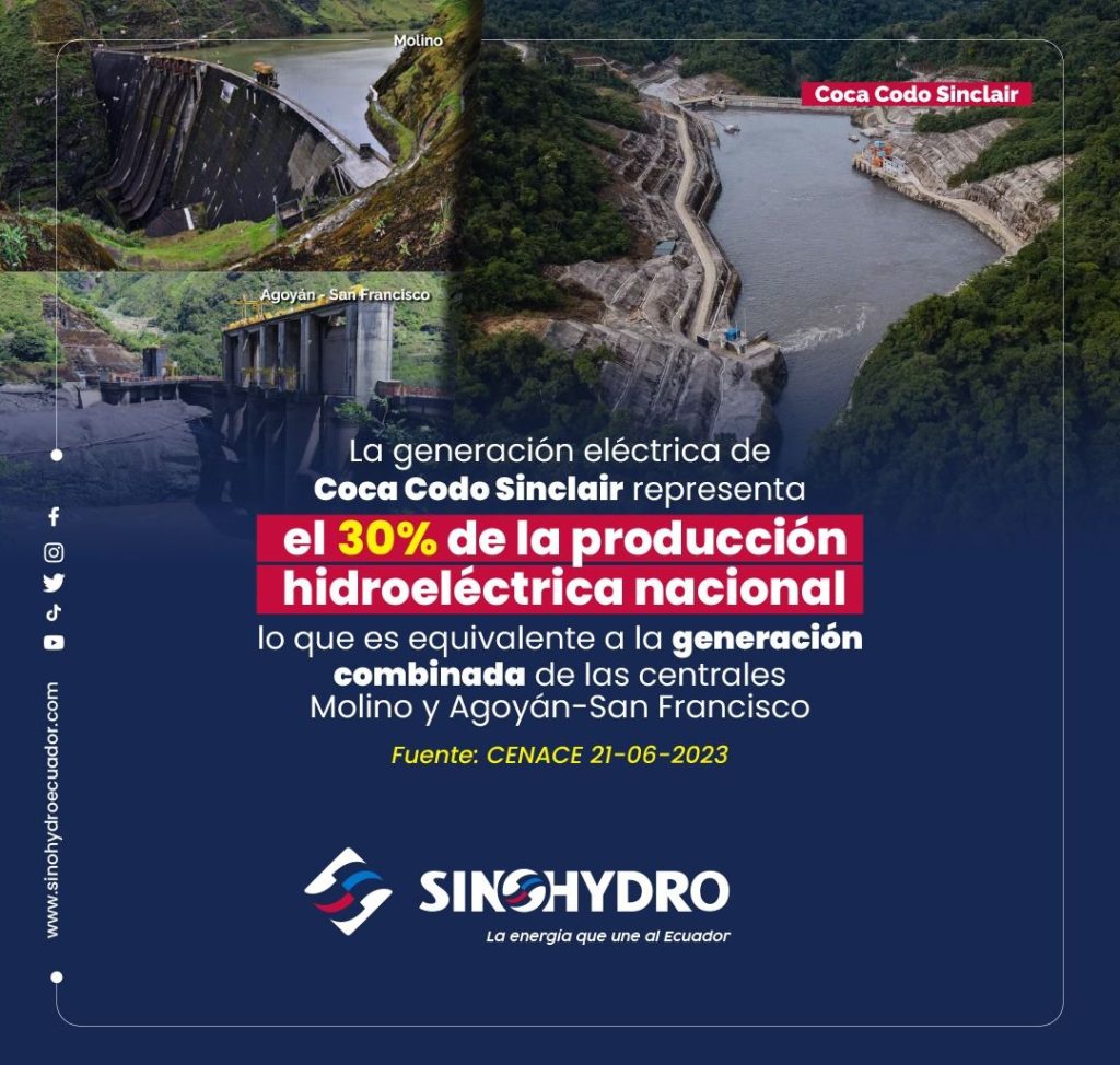 Coca Codo Sinclair, representa el 30% de la producción hidroeléctrica nacional